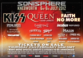 Kiss avec un show spécial, Queen, Faith No More, Marilyn Manson, Gojira, Mastodon et bien d'autres groupes étaient annoncés pour le Sonisphere Knebworth (UK).