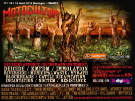 L'organisation du festival Motocultor, qui aura lieu du côté de Vannes les 17, 18 et 19 Août prochain, vient d'annoncer une dizaine de groupes qui participeront à cette édition 2012.