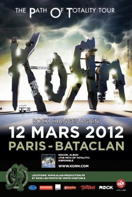 Afin de présenter leur dernier album, The Path Of Totality aux public français, le groupe Korn se produira sur la scène du Bataclan le 12 mars 2012.